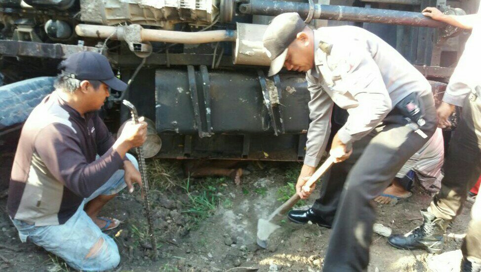“Kronologis kejadiannya yaitu, mobil truk jenis Toyota Dyna warna merah yang dikemudikan Irwan (25) warga Bontonompo Makassar Sulawesi Selatan melaju dari arah barat menuju kearah timur. Pada saat menurun tiba-tiba mobil tersebut terbalik dipinggir jalan sebelah kiri sopir tertindis mobil dan di duga meninggal dunia (MD)” urai Kapolres.