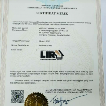 Oleh karena itu, Rusli Bupati Lumbung Informasi Rakyat Rohil, setelah pulang dari Jakarta membawa SERTIFIKAT MEREK yang dikeluarkan oleh Kementerian Hukum dan Hak Asasi Manusia, Bupati Lira Rohil langsung mengundang semua Pengurus DPD dan DPK LIRA se-Rohil dan menyampaikan bahwa Lumbung Informasi Rakyat (LIRA) cuma hanya ada satu, yakni untuk Lumbung Informasi Rakyat (LIRA) yang di nahkodai oleh Presiden Lira Olivia Elvira yg akrab dipanggil BU Pres OD dan di Rohil di nahkodai Bupati Lira Rusli.