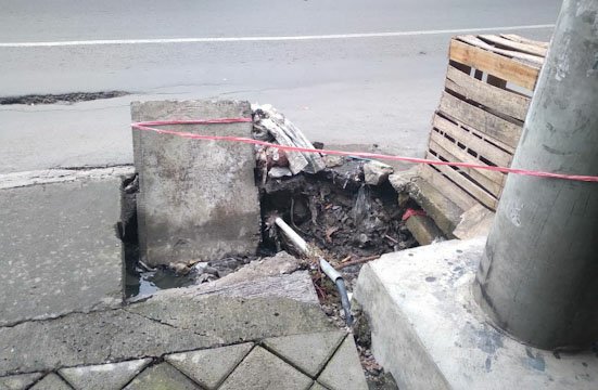 “Air akan menggenang dan menyebabkan banjir karena buangan dari atas, untuk menjaga keselamatan pengendara motor kita beri tali rafia sebagai tetenger,” ungkap pak Tohari, pemilik warkop, depan ambrolnya gorong-gorong pada BN, Rabu (17/12).