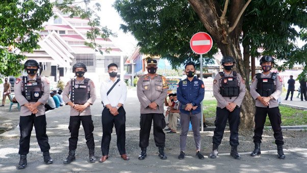 Sebanyak 75 personil polres wajo sulsel melaksanakan pengamanan dibeberapa titik yang telah ditentukan sesuai surat perintah disekitaran gedung pola kantor bupati wajo.