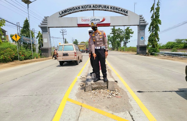 Satlantas Polres Lamongan bersama Forum LLAJ, BPJN, dan PPK 4.5, melakukan pengecekan secara langsung Jalan poros nasional Lamongan Surabaya tepatnya di median gajah depan RM. Aqila. Rabu, (3/11/2022)/ Foto: Bang IPUL / Tian