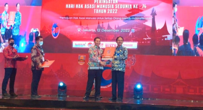 Penghargaan tersebut diserahkan Direktur Jenderal (Dirjen) HAM Kemenkumham Mualimin Abdi kepada Bupati Pesisir Barat Dr. Drs. Agus Istiqlal, S.H., M.H., dalam Peringatan Hak Asasi Manusia Sedunia ke-74 di Jakarta,Senin 12-12-2022.