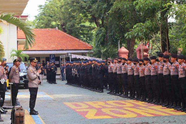 Sebelum pengamanan sidang, ribuan personel gabungan dari Polrestabes Surabaya dan Polda Jatim menggelar Apel di halaman PN Surabaya.