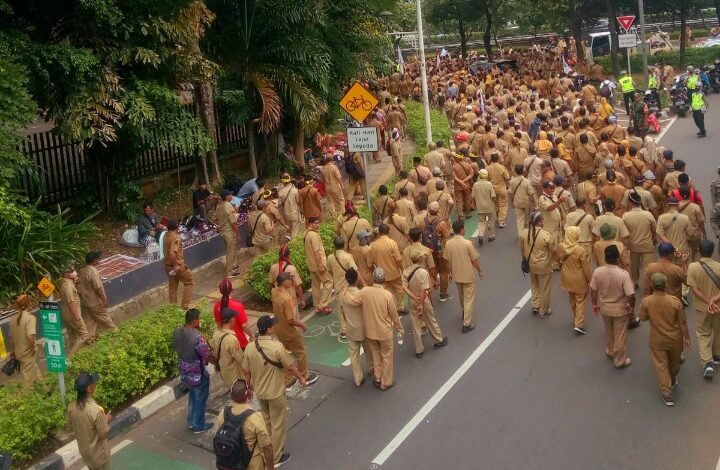 Padatnya aksi para kepala desa dari berbagai Daerah di area Senayan Gedung MPR Jakarta membuat kemacetan panjang hingga Cawang Uki.