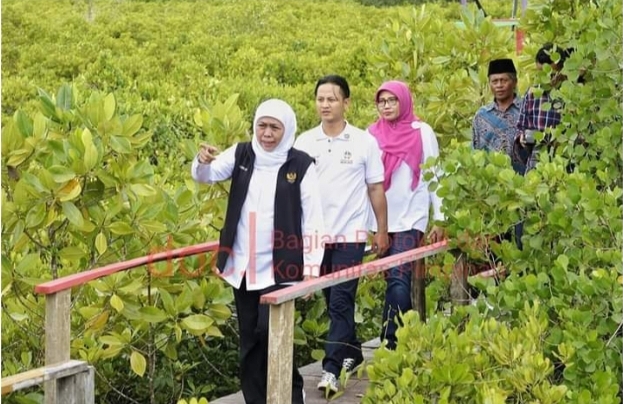 TRENGGALEK, BIDIKNASIONAL.com – Melihat ratusan hektare hutan mangrove di Pancer Cengkrong, Desa Karanggandu, Kecamatan Watulimo, Trenggalek, Gubernur Jawa Timur, Khofifah Indar Parawansa ingin menggelar Festival Hutan Mangrove ke-4 di Trenggalek. Keinginannya ini disampaikan mantan Menteri Sosial itu, saat meninjau upaya pelestarian ekologi laut yang dilakukan oleh masyarakat Trenggalek.