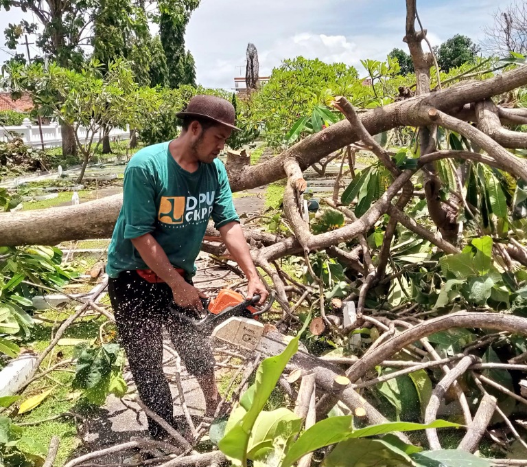 Dinas Pekerjaan Umum Cipta Karya, Perumahan dan Permukiman (PUCKPP) Banyuwangi membersihkan pohon tumbang (Foto.dok: @dj/ripto)