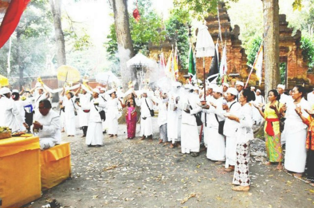 Umat Hindu upacara peringatan hari raya Pagerwesi di Pura Luhur Giri Salaka alas Purwo Kec.Tegaldlimo (Foto.dok: Ist)