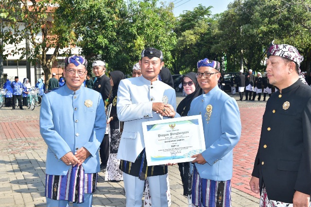 LAMONGAN, BIDIKNASIONAL.com – Ada yang berbeda dengan Peringatan Hari Jadi Lamongan ke-454 tahun ini, uniknya tata cara pelaksanaan apel keseluruhannya menggunakan Bahasa Jawa.