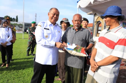 Pada penyerahan dilaksanakan secara simbolis oleh Penjabat (Pj) Bupati Jombang, Sugiat didampingi Kepala Dinas Sosial (Dinsos) Kabupaten Jombang, Hari Purnomo dan para pejabat Forum Koordinasi Pimpinan Daerah (Forkopimda) Jombang di Lapangan Pemkab Jombang.