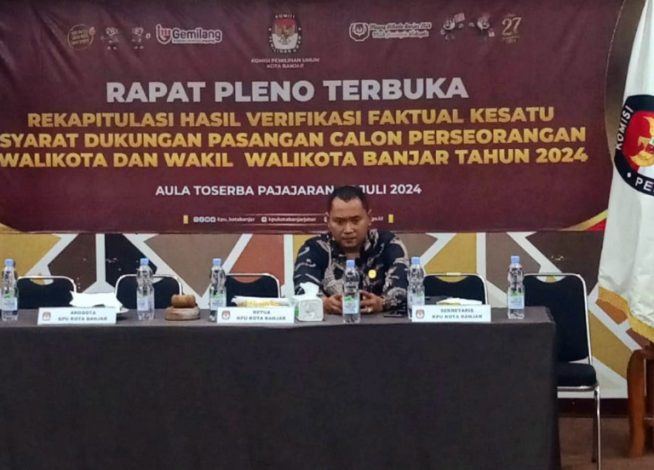 Ketua KPU Banjar, Muhammad Muklis mengadakan Rapat Pleno terbuka tujuannya adalah untuk Merekapitulasi hasil Verifikasi Faktual, syarat dukungan pasangan Bacalon perseorangan wali kota dan wakil walikota Banjar tahun 2024-2029.