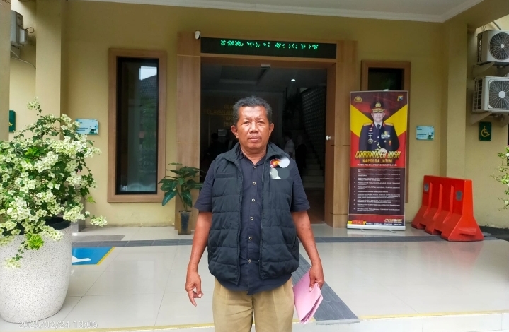 Hasan Alaiwah saat mewakili laporan para warga di ruang Sentra Pelayanan Kepolisian Terpadu (SPKT), Mapolda Jatim, pada Senin (24/02/2025)/ Foto: Abd Rosi BN Bangkalan