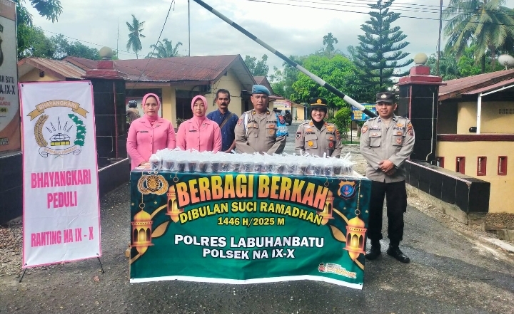 LABUHANBATU, BIDIKNASIONAL.com – Dalam rangka menyambut bulan suci Ramadhan 1446 H, Polsek Na IX-X melaksanakan kegiatan pembagian takjil kepada masyarakat pada Jumat, 7 Maret 2025, di wilayah hukum Polsek Na IX-X, Kecamatan Na IX-X, Kabupaten Labuhanbatu Utara.