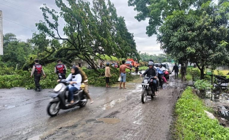 Sat Samapta Polres Labuhanbatu Giat Patroli Urai Kemacetan Akibat Pohon Tumbang