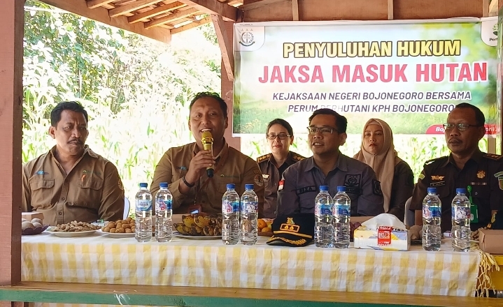 BOJONEGORO, BIDIKNASIONAL.com – PERHUTANI Kesatuan Pemangkuan Hutan (KPH) Bojonegoro bekerja sama dengan Kejaksaan Negeri (Kejari) Bojonegoro menggelar kegiatan penyuluhan hukum bertajuk “Jaksa Masuk Hutan” di Pos PTM 09 RPH Ngorogunung, BKPH Clebung, KPH Bojonegoro, Selasa (29/4/2025). Kegiatan ini bertujuan untuk memberikan pemahaman hukum kepada masyarakat desa hutan, khususnya kepada anggota Lembaga Masyarakat Desa Hutan (LMDH).