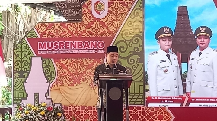 Hal itu disampaikan Bupati Mojokerto, DR. H Muhammad Al Barra, yang iash sapa Gus Bara saat memberikan sambutan Musyawarah Perencanaan Pembangunan Jangka Menengah Daerah (RPJMD) 2025 – 2029, di Pendopo Maja Tama Pemkab Mojokerto, Jum’at (2/5/2025).