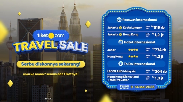 Mewujudkan liburan di momen long weekend menjadi lebih mudah, nyaman, dan terjangkau dengan berbagai promo dari tiket.com Travel Sale yang berlangsung dari tanggal 9 – 14 Mei 2025 dengan diskon hingga 50% dan instant cashback hingga Rp610ribu untuk tiket transportasi, hotel, dan atraksi wisata. Jadikan kesempatan ini sebagai momen yang tepat untuk menciptakan pengalaman liburan tak terlupakan bersama orang terdekat!