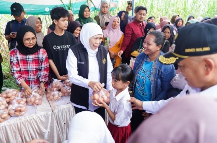 Gubernur Khofifah mengapresiasi masyarakat Malang yang begitu antusias menyambut gelaran pasar murah ini.