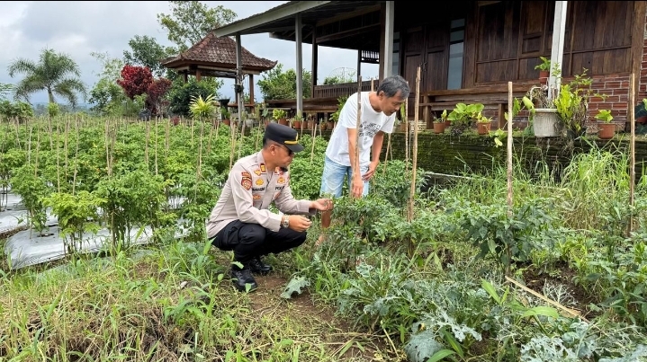 Sukseskan Ketahanan Pangan Nasional, Kapolsek Licin Polresta Banyuwangi Tinjau Budidaya Cabai di Desa Segobang