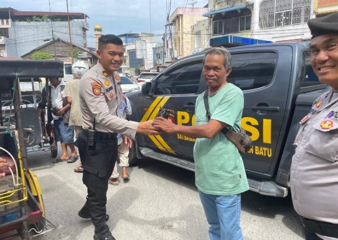 LABUHANBATU, BIDIKNASIONAL.com – Dalam rangka mempererat hubungan Polri dengan masyarakat serta menumbuhkan semangat kepedulian sosial, Satuan Samapta Polres Labuhanbatu melaksanakan kegiatan “Jumat Berkah” dengan membagikan 50 bungkus nasi makan siang kepada warga yang membutuhkan, khususnya pengemudi becak dan tukang parkir di seputaran Kota Rantauprapat, pada Jumat, 30 Mei 2025.