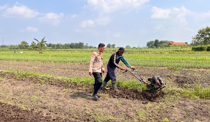 SIDOARJO, BIDIKNASIONAL.com – Guna sukseskan progran ketahanan pangan Polresta Sidoarjo Polda Jatim, Kanit Binmas Polsek Krembung, Aiptu Adin, mendampingi Bapak Moko petani Desa Lemujut, Kecamatan Krembung, Kabupaten Sidoarjo, Senin (2/6/2025), garap lahan pertanian sawi agar tetap subur guna terwujudnya Pekarangan Pangan Bergizi (P2B).