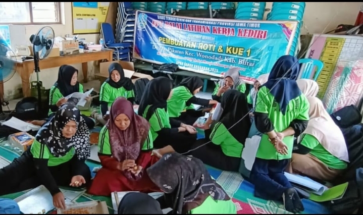 Pelatihan pembuatan roti dan kue-1 di Kantor Balai Desa Pikatan Kecamatan Wonodadi Kabupaten Blitar yang digelar BLK Kediri Pelatihan diikuti 16 peserta dimulai 29 April sampai 19 Mei 2025. (Foto: ist)