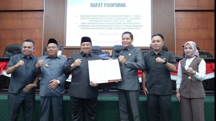 JOMBANG, BIDIKNASIONAL.com – Penetapan Kesepakatan Bersama antara Bupati Jombang dan Pimpinan DPRD adalah proses pengesahan suatu peraturan daerah atau kebijakan bersama yang telah disetujui oleh kedua belah pihak. Maka beberapa hari lalu, DPRD Kabupaten Jombang menggelar sidang paripurna Penetapan Kesepakatan Bersama Antara Bupati Jombang dan Pimpinan DPRD terkait Perubahan KUA (Kebijakan Umum Anggaran dan Perubahan PPAS (Prioritas dan Plafon Anggaran Sementara) APBD Tahun Anggaran (TA) 2025 pada hari Senin 16 Juni 2025 di Ruang Paripurna Kantor DPRD Kabupaten Jombang.
