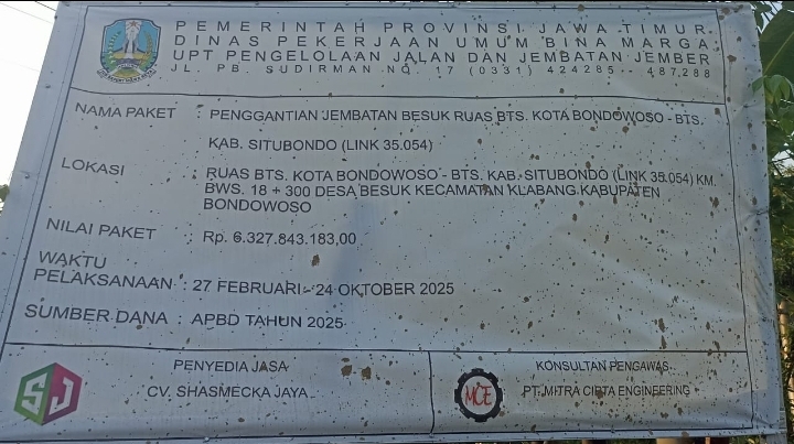 Sekedar diketahui, bahwa proyek pembangunan jembatan di Dinas Pekerjaan Umum Bina Marga UPT Pengelolaan Jalan dan Jembatan Jember yang diambilkan dari APBD tahun 2025 tersebut, dimonitoring langsung oleh konsultan pengawas PT Mitra Cipta Engineering (MCE).