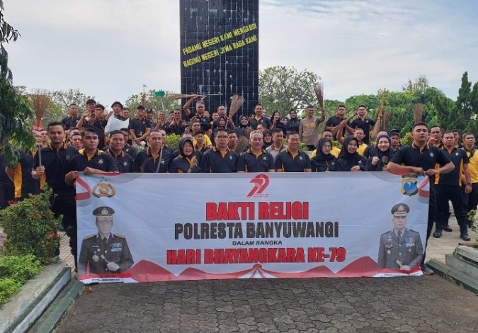Bakti religi berupa kegiatan kebersihan lingkungan ini menjadi bagian dari rangkaian peringatan Hari Bhayangkara ke-79 yang diselenggarakan Polresta Banyuwangi.