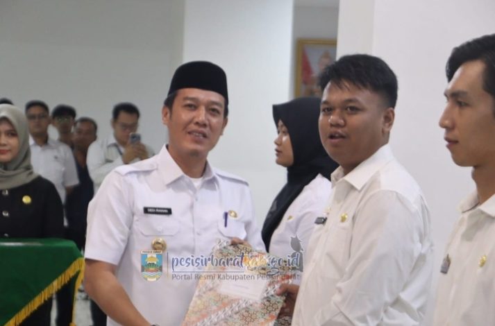 PESISIR BARAT, BIDIKNASIONAL.com – Bupati Pesisir Barat (Pesibar), Dedi Irawan, melantik secara langsung 409 Calon Pegawai Negeri Sipil (CPNS) yang berhasil lolos seleksi dan 4 CPNS lulusan Sekolah Tinggi Transportasi Darat (STTD), di Lobi Lantai 1 Gedung Marga Sai Batin, Komplek Perkantoran Pemkab Pesibar, Rabu (25/6/2025).