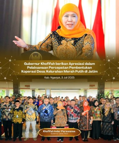 NGANJUK, BIDIKNASIONAL.com – Gubernur Jawa Timur Khofifah Indar Parawansa mengungkapkan rasa syukur dan bangga terhadap 8.494 desa dan kelurahan di Jatim sudah memiliki Koperasi Desa/Kelurahan Merah Putih berbadan hukum sejak 30 Juni 2025.