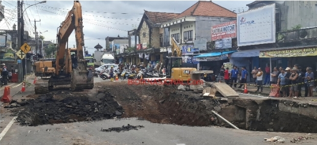 Ka. Satker Pelaksana Jalan Nasional Provinsi Bali, I Nyoman Yasmara bersama PPK 1.3 Provinsi Bali ruas jalan (Antosari – Tabanan – Mengwitani – Dalam Kota Denpasar, Mengwitani – BR Taman Tanda) Pramono Tri Yulianto, serta Ka. Satker Perencana dan Pengawasan Jalan Nasional Provinsi Bali, Aderiani didampingi PPK Perencanaan Jalan Nasional Wilayah Provinsi Bali, I Putu Eka Arman Agustina berada dilokasi ditempat amblasnya jalan yang tergerus yang saat ini sedang dilakukan proses pembongkaran badan jalan.