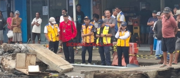 “Informasi dari warga setempat bahwa sebelum terjadinya jalan jebol, sudah ada lubang disisi badan jalan trotoar kurang lebih 10m, dan sudah dipasangi garis police line (garis polisi barikade) serta terpal berwarna biru”.