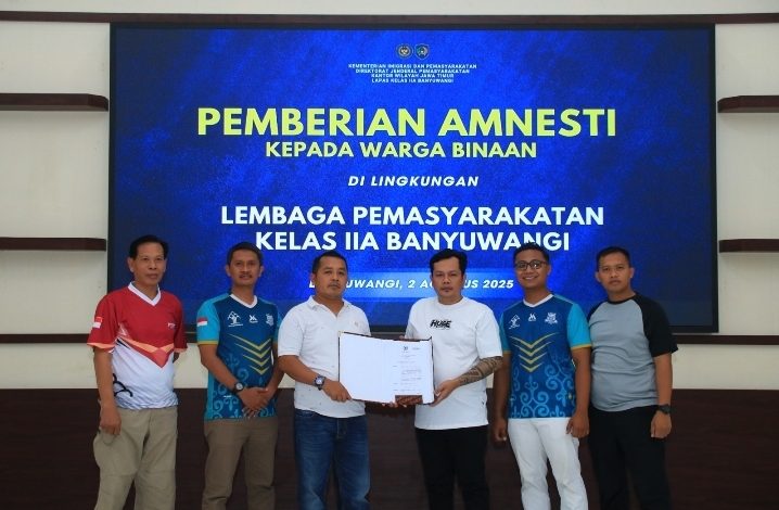 Salinan Keputusan Presiden Nomor 17 Tahun 2025 tentang Pemberian Amnesti diserahkan secara langsung oleh Kepala Lapas Banyuwangi, I Wayan Nurasta Wibawa, Sabtu (2/8).