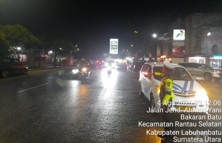 LABUHANBATU, BIDIKNASIONAL.com -Dalam upaya menciptakan situasi keamanan, keseamatan, ketertiban, dan kelancaran lalu lintas (Kamseltibcarlantas) di wilayah hukumnya, Satuan Lalu Lintas (Satlantas) Polres Labuhanbatu melaksanakan kegiatan Patroli Blue Light pada Senin malam, 4 Agustus 2025.