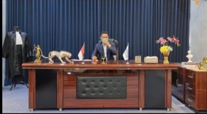 Advokat Indra Yunus Wahyu Laturette,SH di ruang kerjanya. (Foto : Ist/BN)