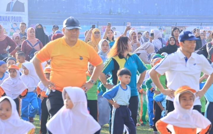 Kapolres Labuhanbatu Ikuti Senam Anak Indonesia Hebat Bersama 1.000 Anak PAUD dan Wamendikdasmen RI