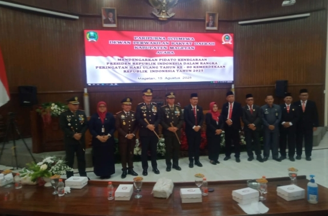 MAGETAN, BIDIKNASIONAL.com – Rapat Paripurna Khusus DPRD Magetan agenda mendengarkan Pidato Kenegaraan Presiden H. Prabowo Subianto dalam menyambut 80 Tahun Kemerdekaan Republik Indonesia digelar.