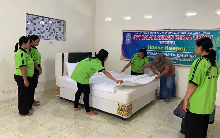 KEDIRI, BIDIKNASIONAL.com – UPT BLK Kediri yang beralamat di Jalan Pare Wates KM 1,5, Desa Gedangsewu Kecamatan Pare Kabupaten Kediri menggandeng LPK Mapan Joyo Sentosa milik PT Sugih Jaya Sentosa melaksanakan Pelatihan Housekeeper yang diikuti 16 peserta dimulai 14 Juli hingga 24 Agustus 2025.