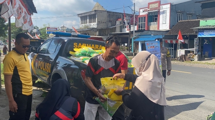 Kegiatan ini digelar dengan menyalurkan beras SPHP dari bulog di sejumlah titik wilayah Banyuwangi, bekerja sama dengan polsek jajaran.