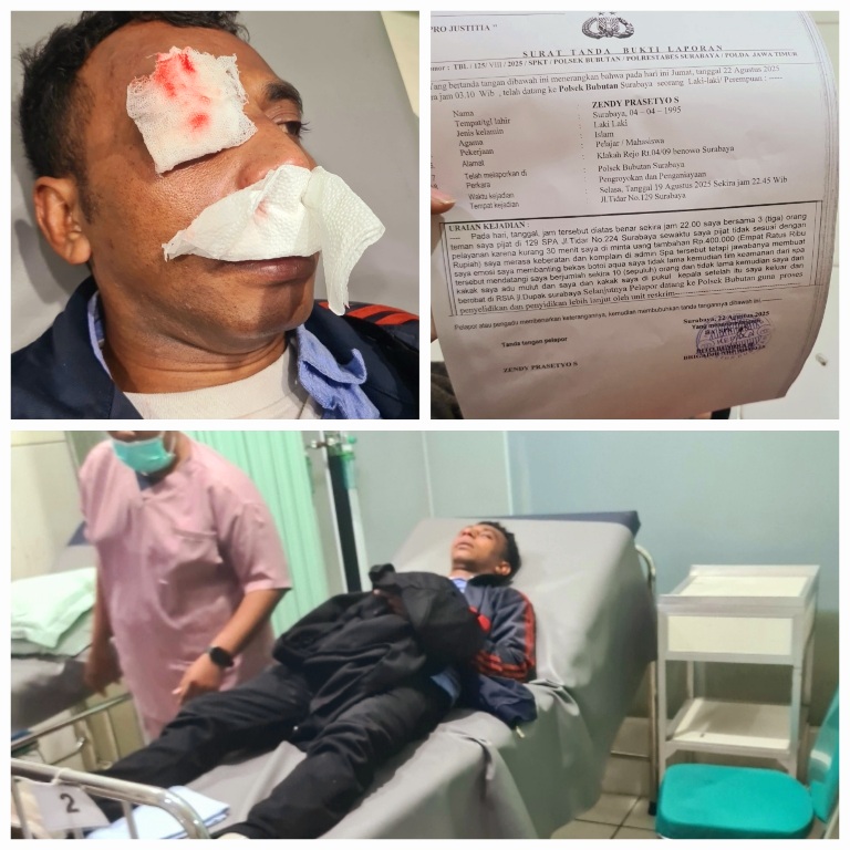 “Padahal waktu durasi pijat masih kurang 30 menit. Saya disuruh bayar lagi sebagai uang tambahan sehingga saya marah didepan resepsionis dengan membuang bekas botol air mineral dan tiba-tiba sekitar sepuluh keamanan datang menghampiri kemudian mengeroyok,” ucapnya, kepada Tim Media ini, Jum’at (23/08/2025).