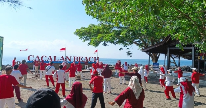 BANYUWANGI, BIDIKNASIONAL.com – Momen HUT Kemerdekaan RI ke- 80, Dinas Perikanan Kabupaten Banyuwangii menggelar senam bersama dan kegiatan lomba-lomba, di lokasi Pantai Cacalan, Kelurahan Klatak, Kecamatan Kalipuro, Kabupaten Banyuwangi, Sabtu 23 Agustus 2025.