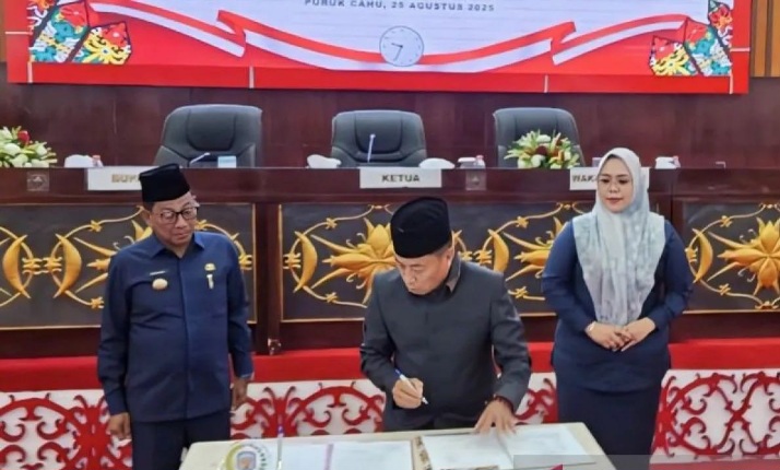 Penandatanganan dokumen Rapat Paripurna Ke-6 Masa Sidang II Tahun 2025 DPRD Murung Raya, Senin (25/8/2025). Foto: efn