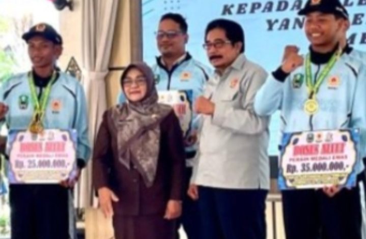 MAGETAN, BIDIKNASIONAL.com – Penyerahan bonus kepada para atlit yang telah meraih sukses menyabet medali dalam ajang Pekan Olahraga Provinsi (Porprov ) XI Jawa Timur khususnya dan umum nya juga kepada pelatih, official dan manajer yang telah sukses mengantar para atlit nya meraih medali. Penyerahan bonus tersebut diselenggarakan di Pendopo Surya Graha Magetan yang dihadiri langsung oleh Nanik Endang Rusminarti Bupati Magetan, Kapolres, Dandim dan Jajaran Forkopimda serta orang tua atlit, para atlit dan pelatih.