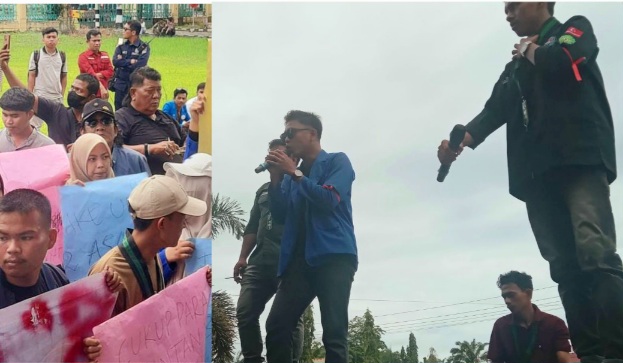 Pantauan Wartawan Bidik Nasional, Gabungan Mahasiswa Aceh Singkil Demontrasi di DPRK Aceh Singkil. (Foto Dok: BN.Com)