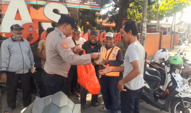 BANYUWANGI, BIDIKNASIONAL.com – Polsek Kawasan Pelabuhan Tanjungwangi (KPT) peduli sesama dengan membagikan nasi bungkus dan air mineral di area pelabuhan penyenberangan ASDP Ketapang Jumat berkah, 5 September 2025.