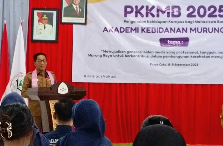 MURUNG RAYA, BIDIKNASIONAL.com – Bupati Murung Raya,Kalimantan Tengah, Heriyus membuka sekaligus memberi motivasi kepada 30 peserta kegiatan Pengenalan Kehidupan Kampus bagi Mahasiswa Baru (PKKMB) Akademi Kebidanan (Akbid) Murung Raya.