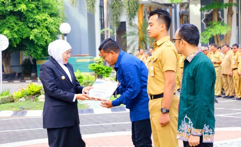 SURABAYA, BIDIKNASIONAL.com – Gubernur Jatim Khofifah Indar Parawansa menggelar apel bersama seluruh ASN di lingkungan Pemprov Jatim di halaman Kantor Sekretariat Daerah Provinsi Jatim, Senin (8/9) pagi.