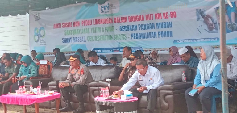 Acara peringatan HUT RRI ke-80 di Aceh Singkil ini berlangsung penuh kebersamaan, masyarakat yang hadir terlihat antusias memanfaatkan kesempatan berbelanja kebutuhan pokok dengan harga lebih murah serta melakukan pemeriksaan kesehatan.