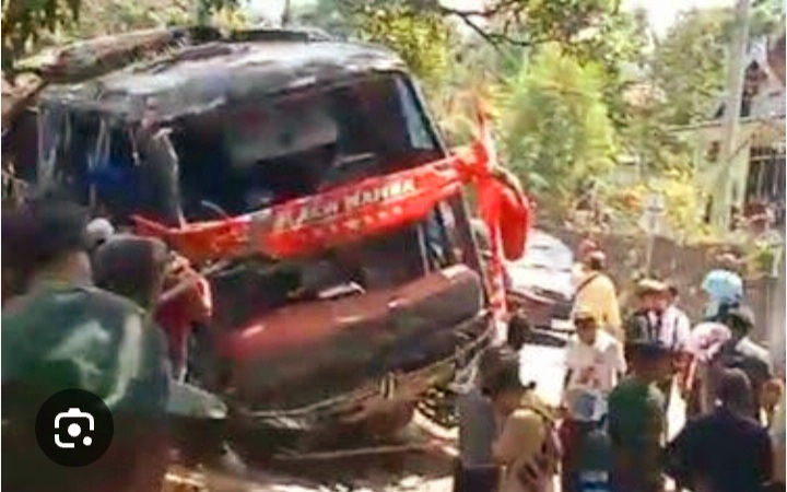 Kondisi bus saat mengalami kecelakaan (foto: istimewa)