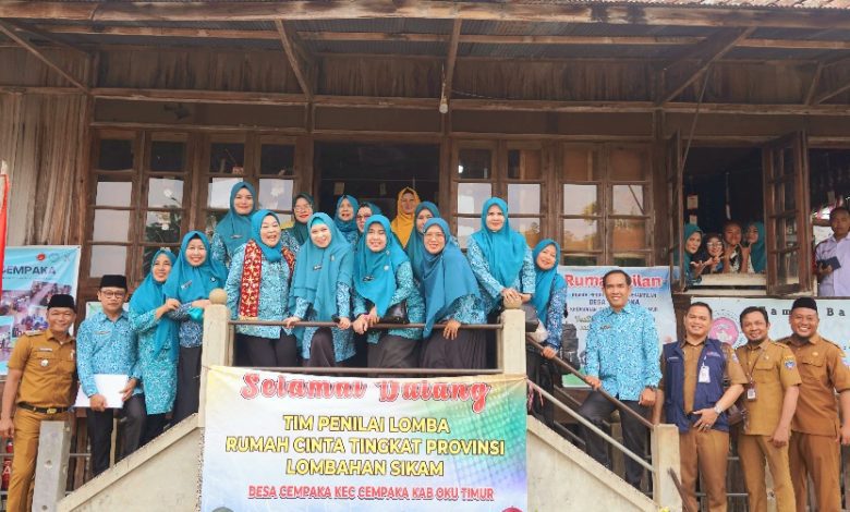 OKU TIMUR, BIDIKNASIONAL.com – Ketua Tim Penggerak PKK Kabupaten OKU Timur dr. Sheila Noberta, Sp.A., M.Kes menyambut hangat kehadiran Tim Penilai Lomba Rumah Cinta dari TP PKK Provinsi Sumatera Selatan di Desa Cempaka, Kecamatan Cempaka, Selasa, 16 September 2025.